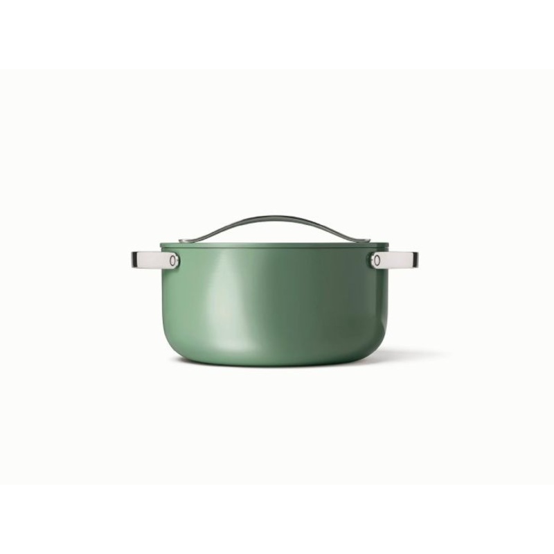 This ceramic Dutch Oven in Sage by Caraway offers you 6.5 qts of healthy cooking without any of the harmful chemicals. Boasting a non-toxic nonstick coating, it is the perfect combination of high quality and practicality. Enjoy cooking with a timeless classic Dutch Oven that can be relied upon to produce delicious meals, time and time again.